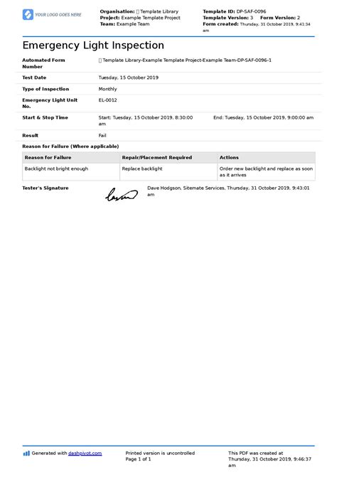 Read emergency lighting inspection forms Doc Library Genesis